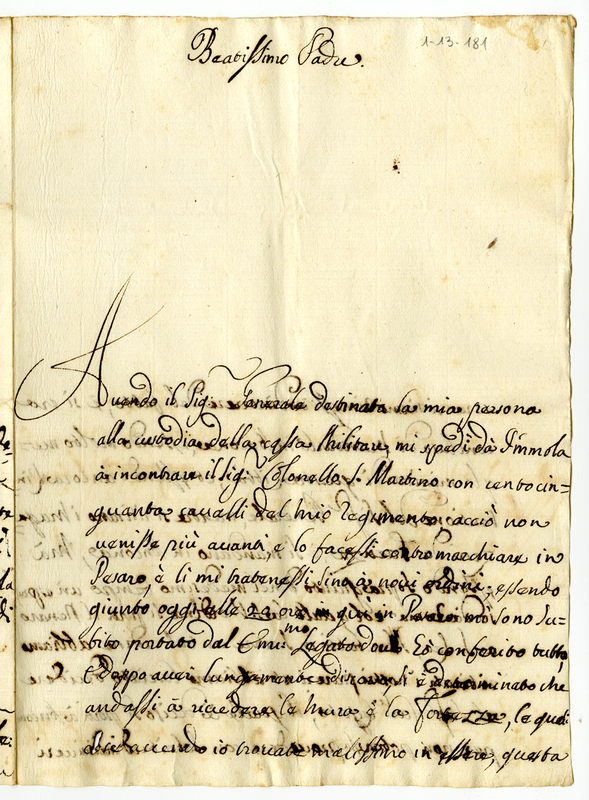 Annuncia al papa la sua contromarcia a Pesaro, decidendo tuttavia di portarsi poi ad Ancona. Annuncia anche che per necessità pratiche porterà la cassa dei soldi in Ancona e non a S. Leo