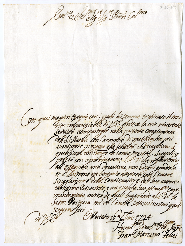 Lettera di Francesco Mariano Febei al cardinale Annibale Albani (1724 dicembre 16)