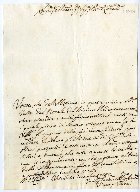 Lettera di Vincenzo Teloni al cardinale Annibale Albani (1724 dicembre 13)