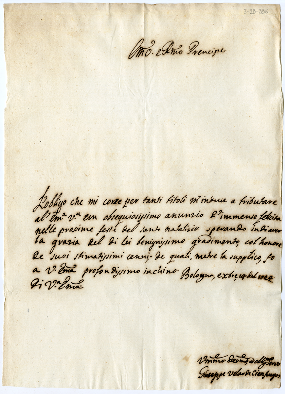 Lettera di Giuseppe Velar de Cienfuegos al cardinale Annibale Albani (1724 dicembre 14)