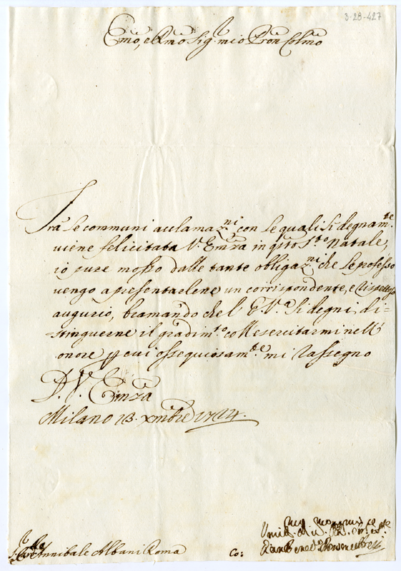 Lettera di Gian Benedetto Borromeo Arese al cardinale Annibale Albani (1724 dicembre 13)