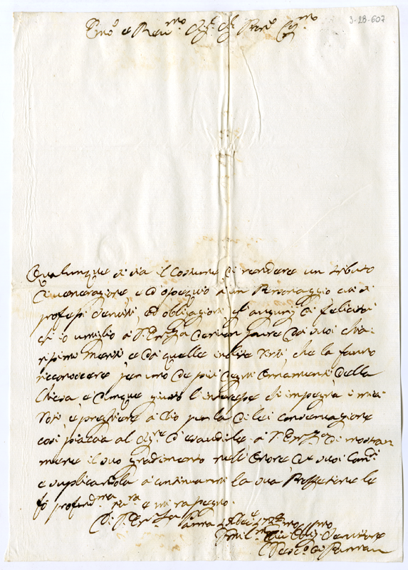 Lettera del vescovo di Parma al cardinale Annibale Albani (1724 dicembre 1)