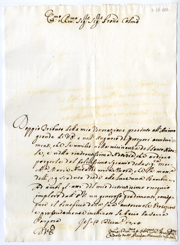 Lettera di Cardolo Maria Pianetti Mannelli de Cardoli al cardinale Annibale Albani (1724 dicembre 3)