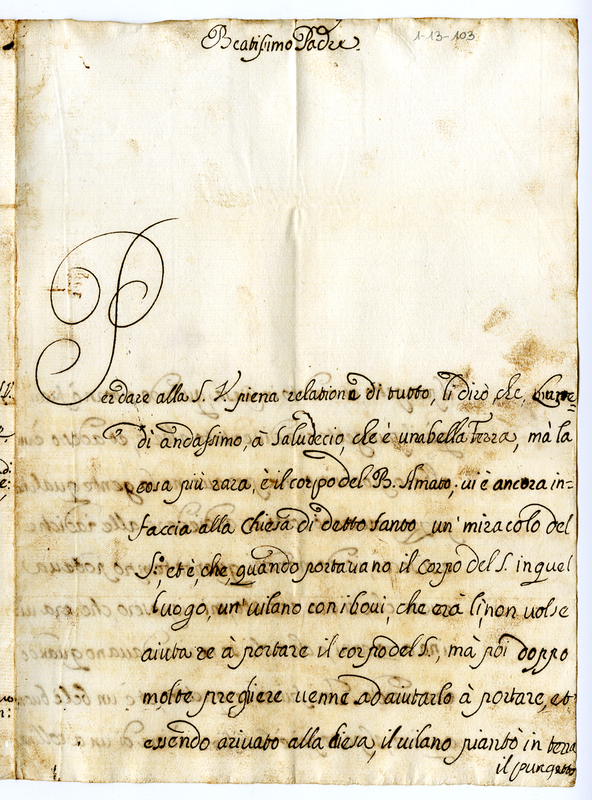 Dà notizia della visita fatta a Saludecio per visitare la tomba del beato Amato