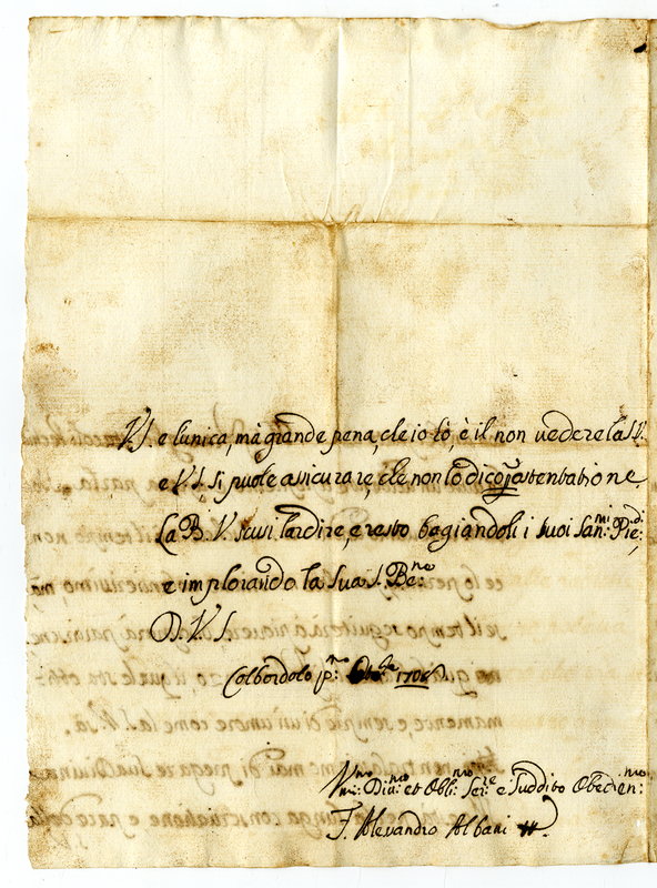 Lettera di Alessandro Albani a papa Clemente XI (1706 ottobre 1)