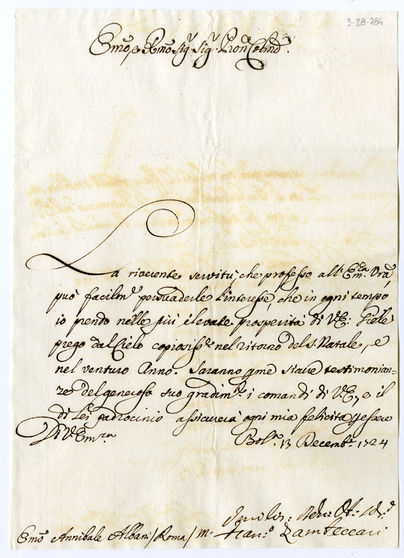 Lettera di Francesco Zambeccari al cardinale Annibale Albani (1724 dicembre 13)