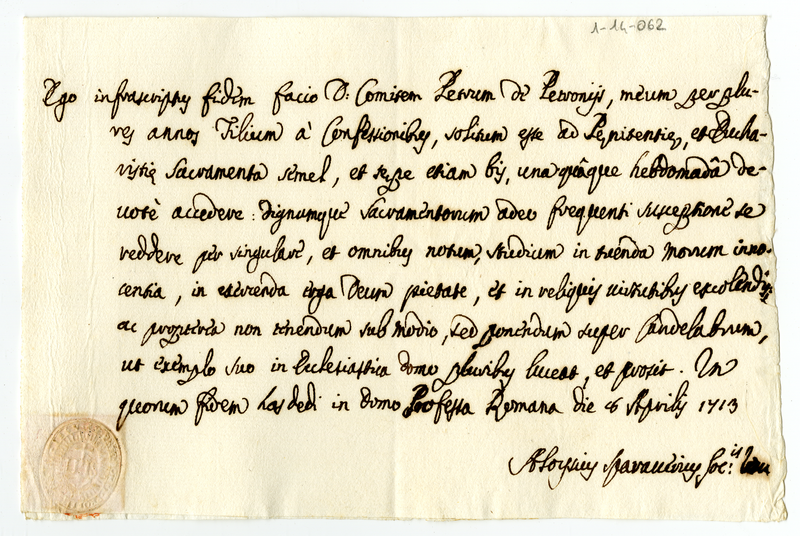 Certificato di studio di Pietro Carlo Petroni