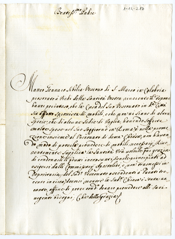 Supplica di Matteo Gennaro Sibilia a Clemente XI