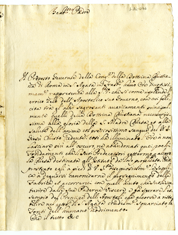 Supplica del preposto generale della Congregazione di Sant'Agata in Trastevere a Clemente XI