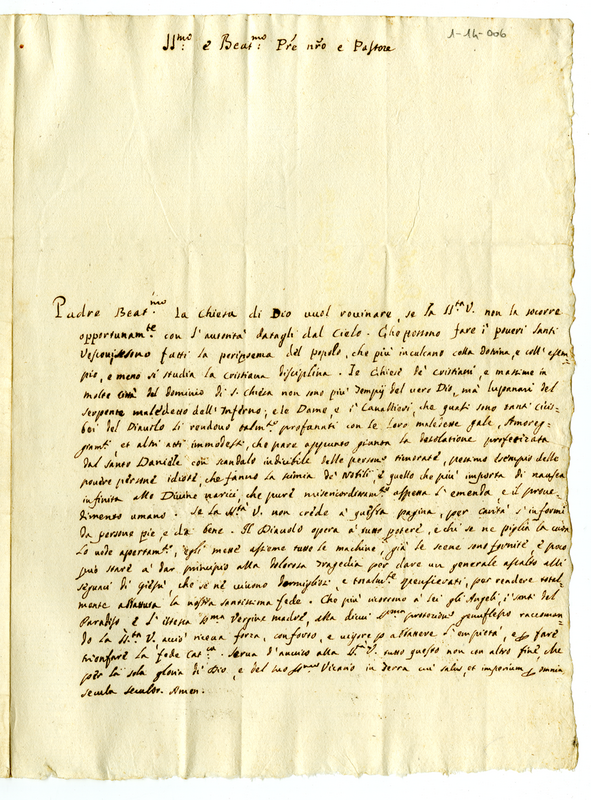 Comunicazione al santo padre in merito alla perdita dei veri valori cristiani
