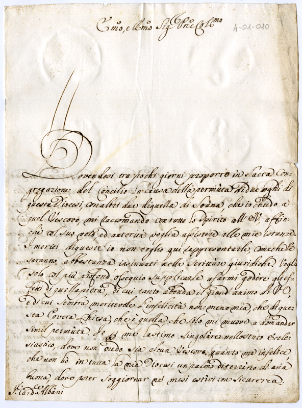 Lettera di Bernardino Egidio Recchi vescovo di Acquapendente al Cardinale Annibale Albani (1715 gennaio 1)