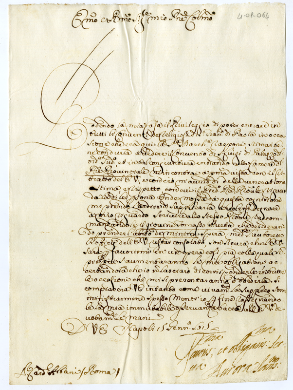 Chiede l'interessamento del cardinale a favore di Tommaso Aveta affinché possa divebntare sacerdote dei Minimi di Paola