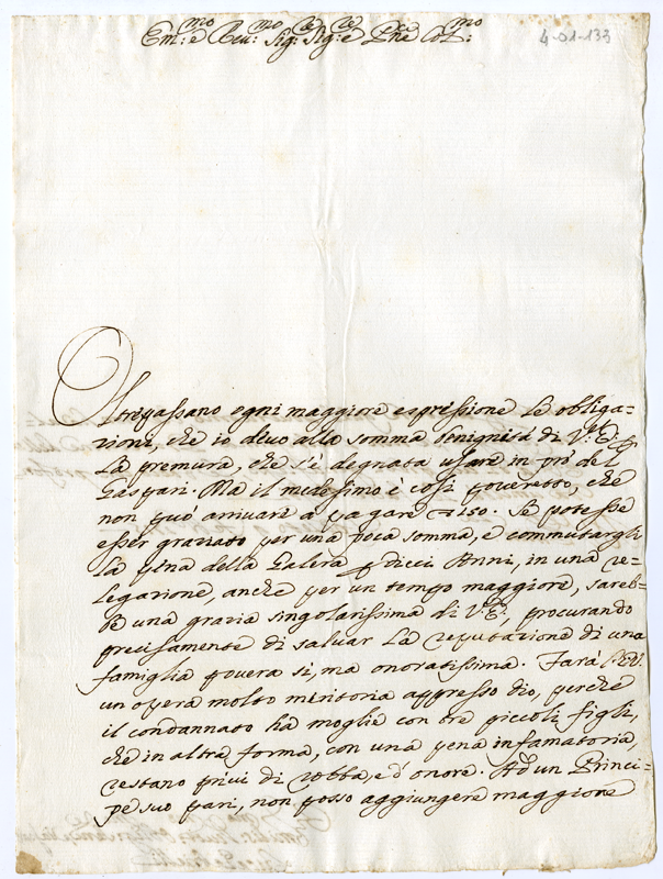 Chide di commutare la pena della galera del Gaspari con dieci anni di relegazione procrando anche di salvare la reputazione della famiglia