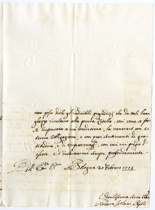 Lettera di Ginevra Isolani Pepoli al Cardinale Annibale Albani (1715 febbraio 20)