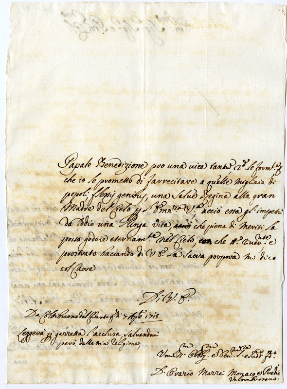 Lettera di Orazio Mazzei al Cardinale Annibale Albani (1715 aprile 7)