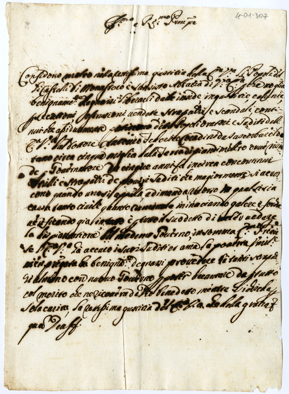 Lettera dei popoli dei castelli di Monastero e San Sisto al Cardinale Annibale Albani (1715 aprile)