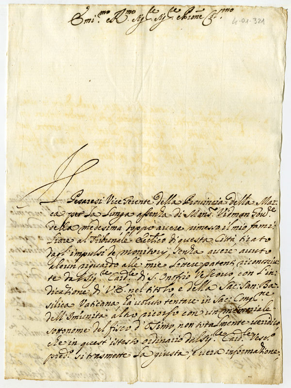 Lettera di Antonio Politauri al cardinale Annibale Albani (1715 aprile 26)
