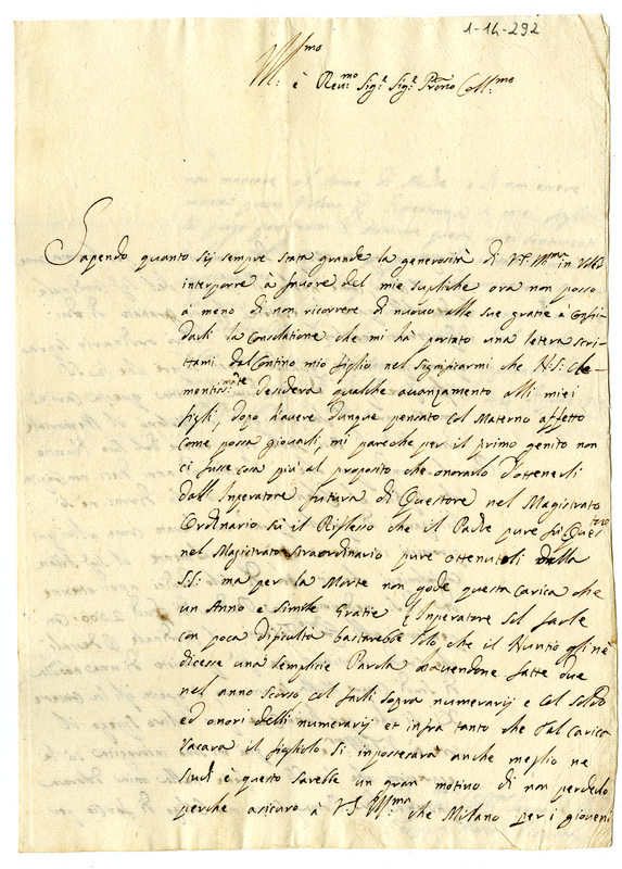 Mosca supplica il pontefice di interessarsi degli incarichi da affidare ai suoi figli