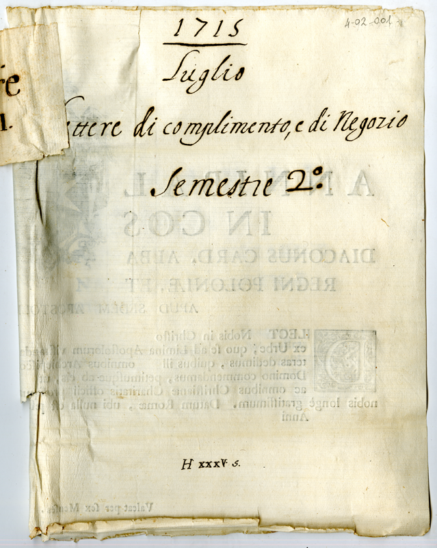 1715 Luglio Lettere di complimento, e di Negozio Semestre 2°