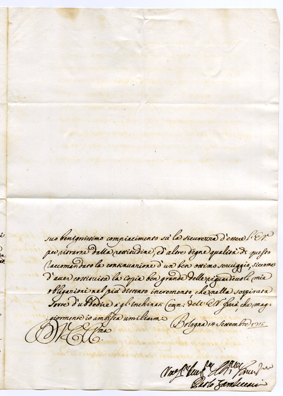 Lettera di Paolo Zambeccari al Cardinale Annibale Albani (1715 settembre 14)