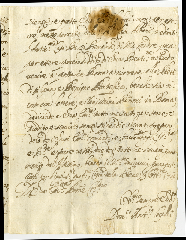 Lettera di Domenico Antonio Cocchi al Cardinale Annibale Albani (1715 ottobre 15)