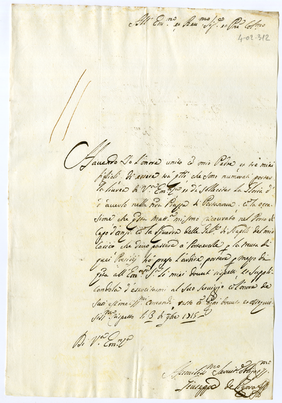 Lettera di Giuseppe De Ligoro al cardinale Annibale Albani (1715 novembre 3)