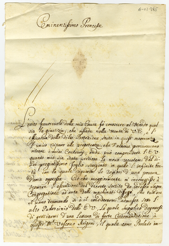 Lettera di Olimpia d'Austria al Cardinale Annibale Albani (1715 dicembre 20)