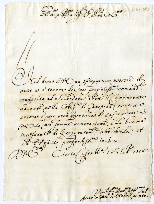 Lettera di Ascanio Vescovo di Civita Castellana e Orte al Cardinale Annibale Albani (1716 febbraio 18)