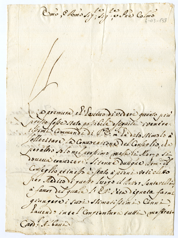 Lettera di Cosimo Imperiali al Cardinale Annibale Albani (1716 febbraio 26)