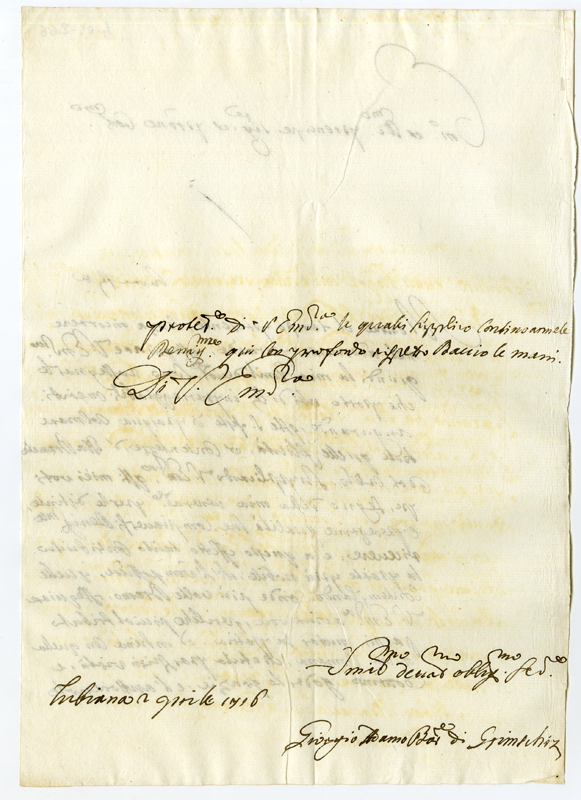 Lettera di Giorgio Adamo barone di Grimschirz ad Annibale Albani (1716 aprile 2)