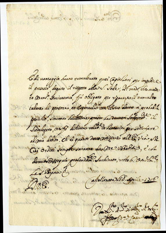 Lettera Onofrio Vescovo di Castellaneta al Cardinale Annibale Albani (1716 aprile 8)