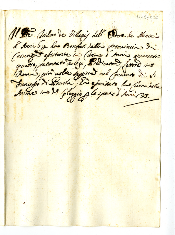 Requisiti di Isidori de Vicllanis della Provincia di Caserta