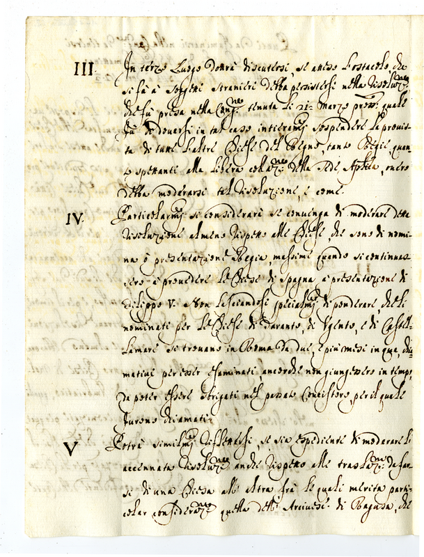 Punti da saminarsi nella Congregazione da tenersi avanti S. S.tà di N. Sig. la mattina delli 18 agosto 1713