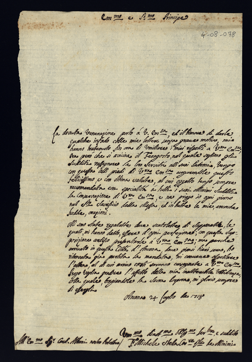 1718. Luglio. Lettere di complimento, e di negozio. Semestre 2°