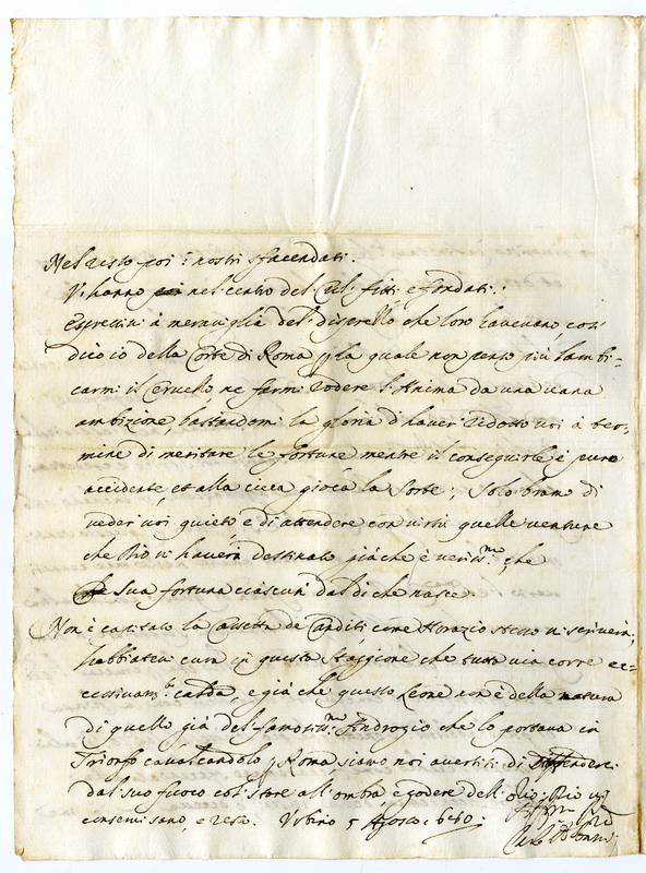 Lettera di Carlo Albani a Giovanni Francesco Albani (1680 agosto 5)
