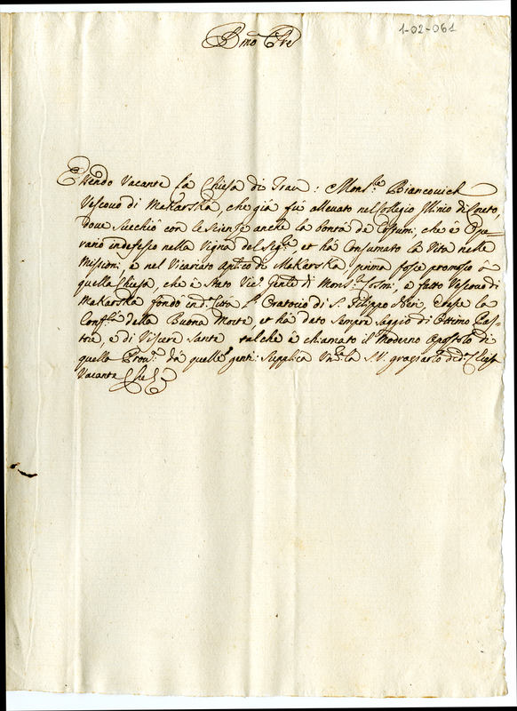 Supplica di monsignor Nicola Biancovich per l'elezione a vescovo di Traù.