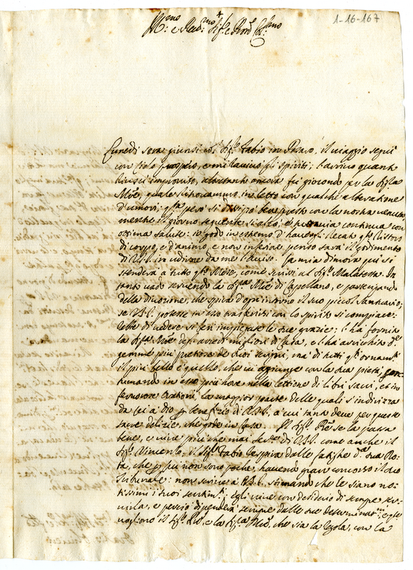 Lettera di Orazio Olivieri degli Abbati a Giovanni Francesco Albani (1689 ottobre 6)