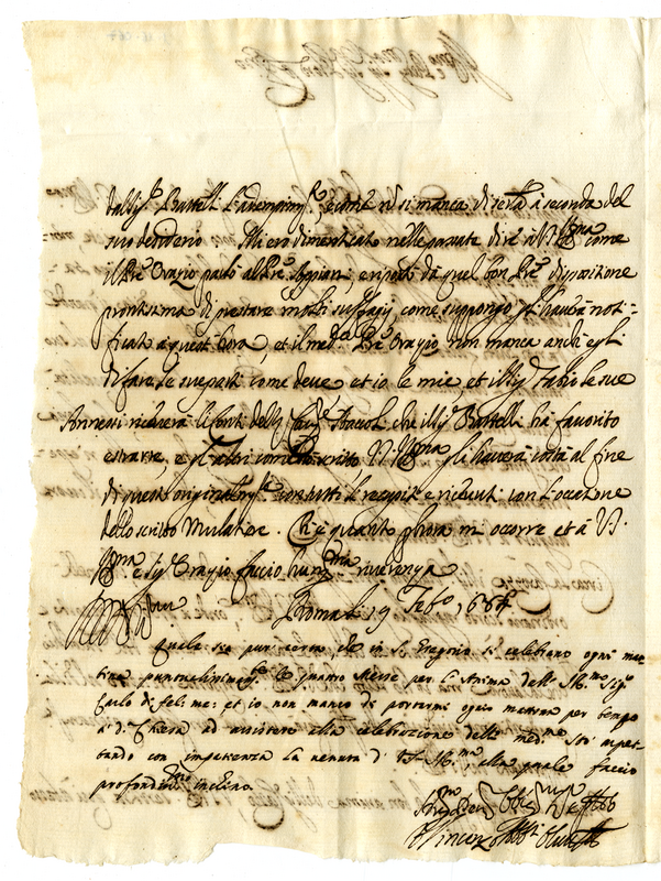 Lettera di Vincenzo Olivieri deli Abbati a Giovanni Francesco Albani (1684 febbraio 19)