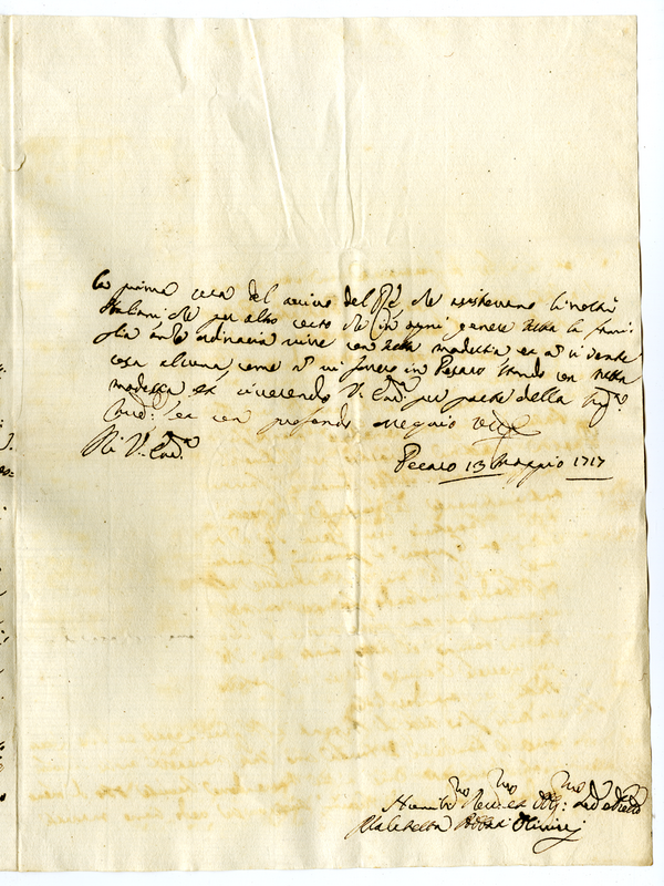Lettera di Malatesta Olivieri degli Abbati a Annibale Albani (1717 maggio 13)