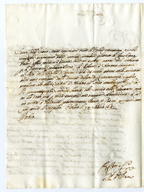 Lettera di Carlo Albani a Giovanni Francesco Albani (1681 marzo 14)