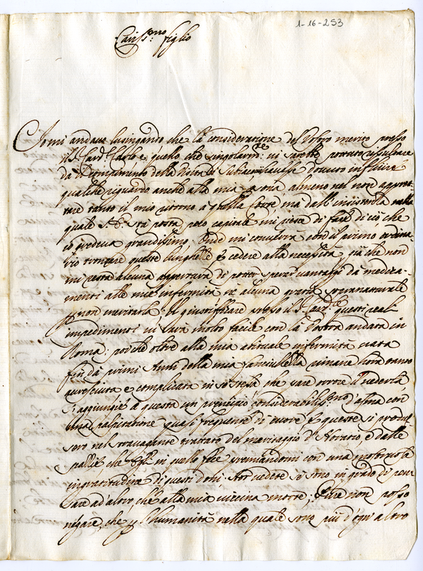 Lettera di Carlo Albani a Giovanni Francesco Albani (1681 febbraio 6)