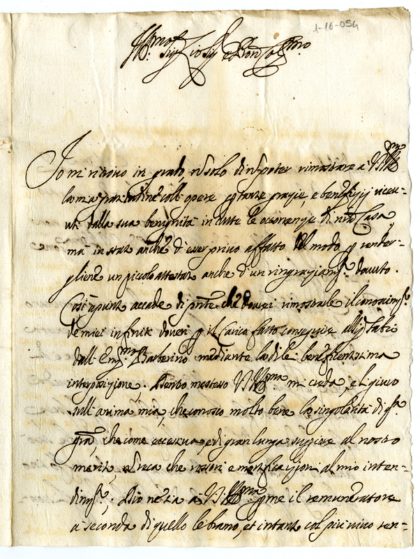 Lettera di Vincenzo Olivieri degli Abbati a Carlo Albani (1683 ca.)