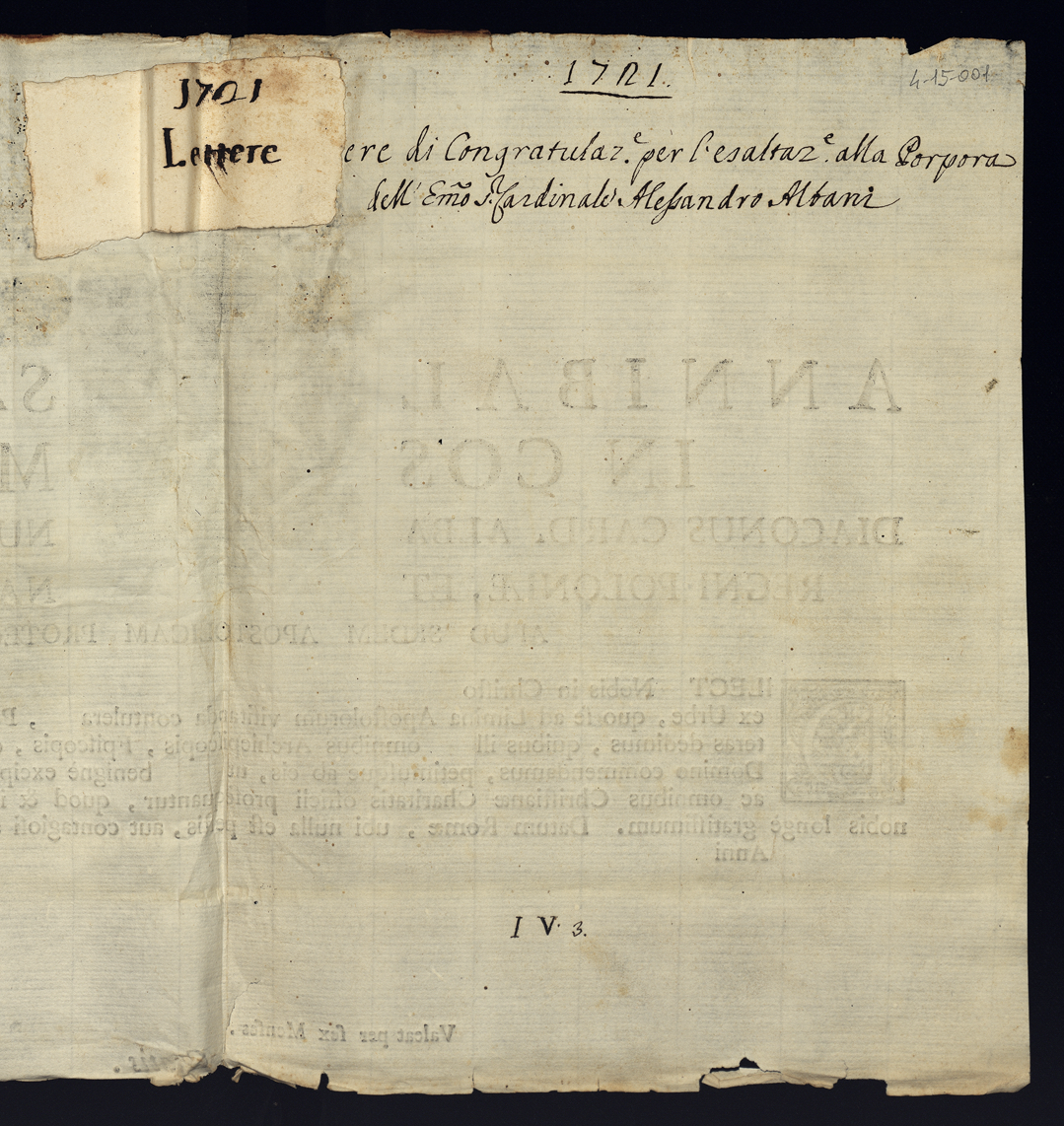 Lettere di congratulazione per l'esaltazione alla Porpora dell'eminentissimo cardinale Alessandro Albani