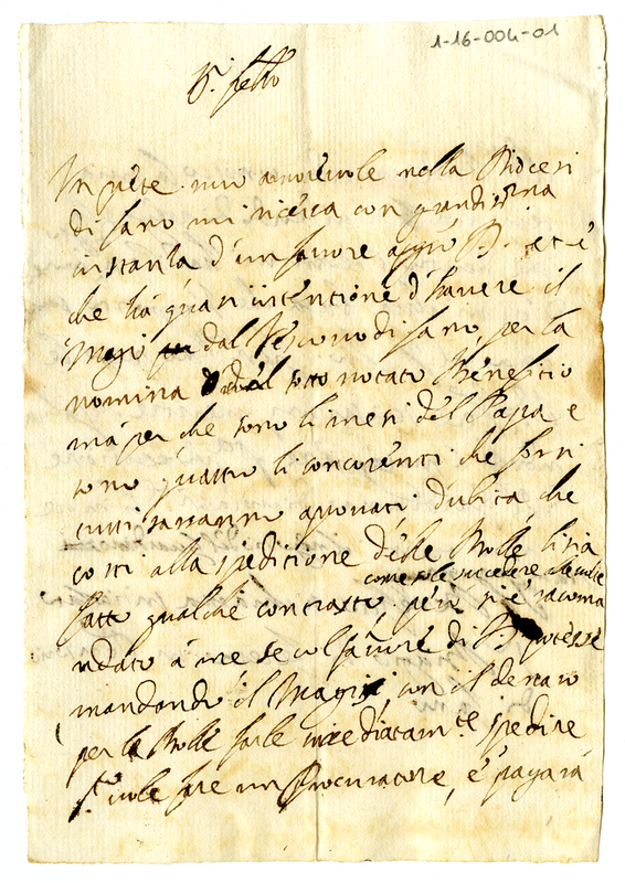 Lettera di Orazio Albani junior a Giovanni Francesco Albani (1675 ca.)