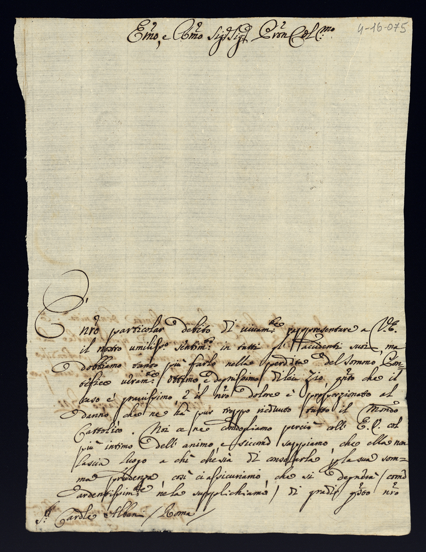 Lettere di condoglianza per la morte di Papa Clemente XI di gloriosa memoria