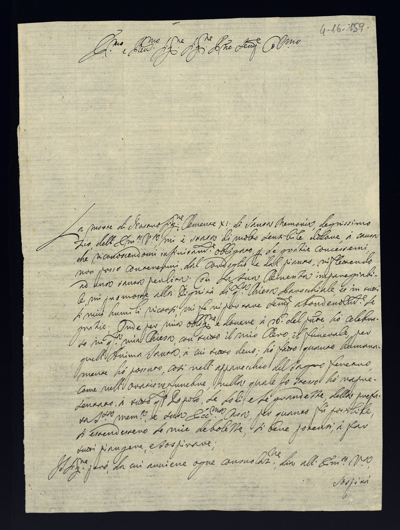 4. Lettere di condoglianza per la morte di Papa Clemente XI di gloriosa memoria
