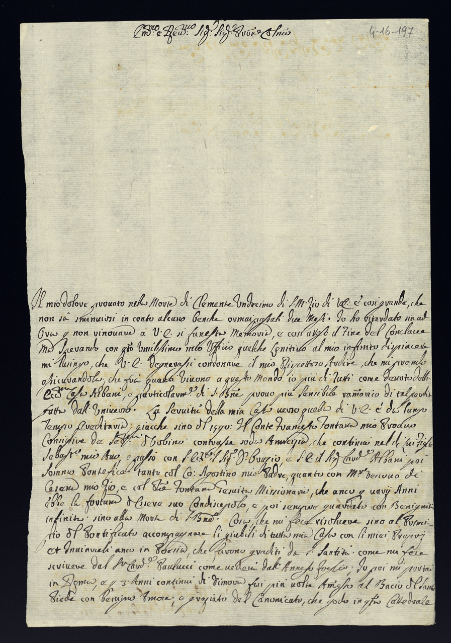 Lettere di condoglianza per la morte di Papa Clemente XI di gloriosa memoria