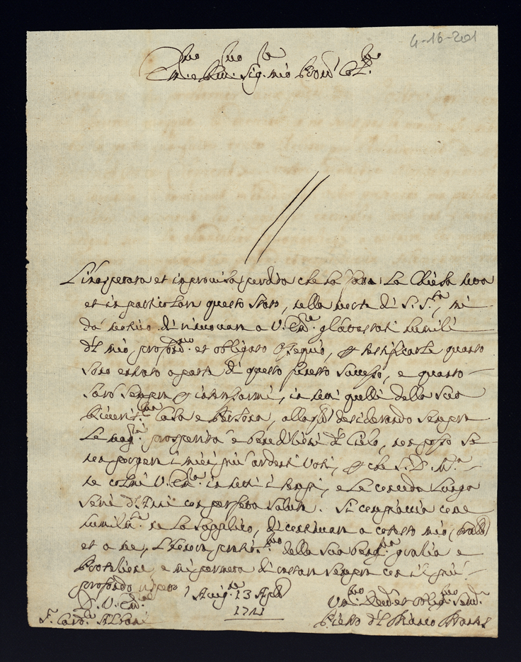 4. Lettere di condoglianza per la morte di Papa Clemente XI di gloriosa memoria