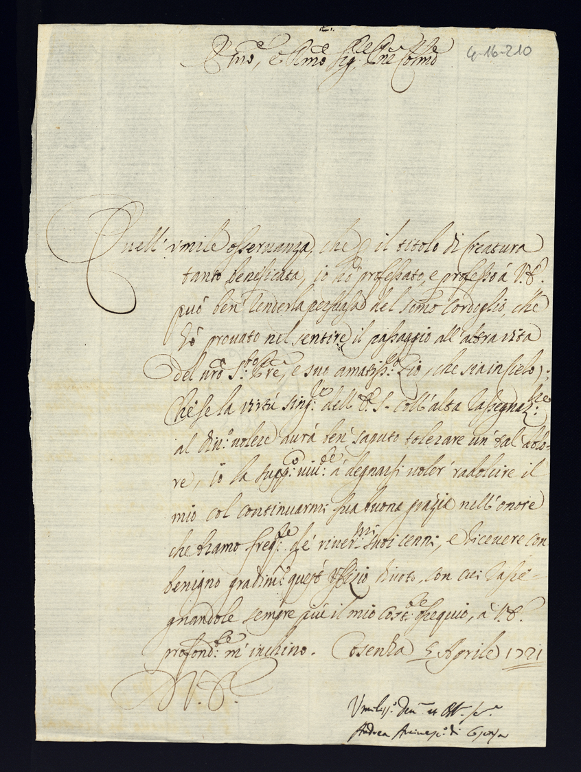 4. Lettere di condoglianza per la morte di Papa Clemente XI di gloriosa memoria