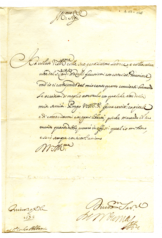 Lettera del marchese di San Tommaso a Carlo Albani (1673 dicembre 20)